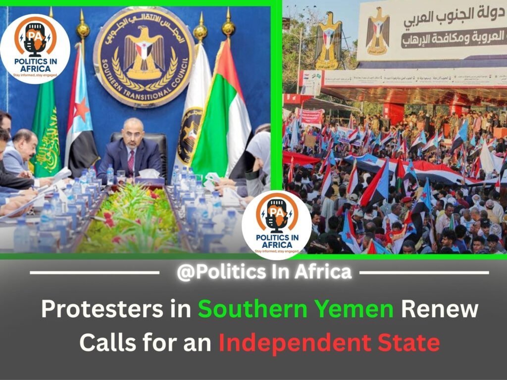 Polotics in Africa ,Adan Yemen. Large crowds gathered in southern Yemen on Friday to demand the restoration of an independent southern state, highlighting renewed momentum behind separatist ambitions despite recent political setbacks for the movement.
